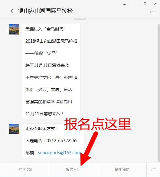 ②、关注赛事官微“锡山宛山湖国际马拉松”→赛事报名